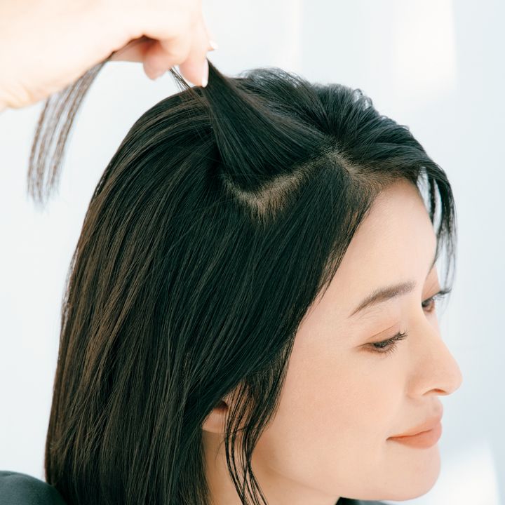 1.お悩みをオフするにはクリップを2本使うのがおすすめ。こめかみから3cm奥側の毛束を3cmの幅でとり、耳より奥側にクリップで留めます。
