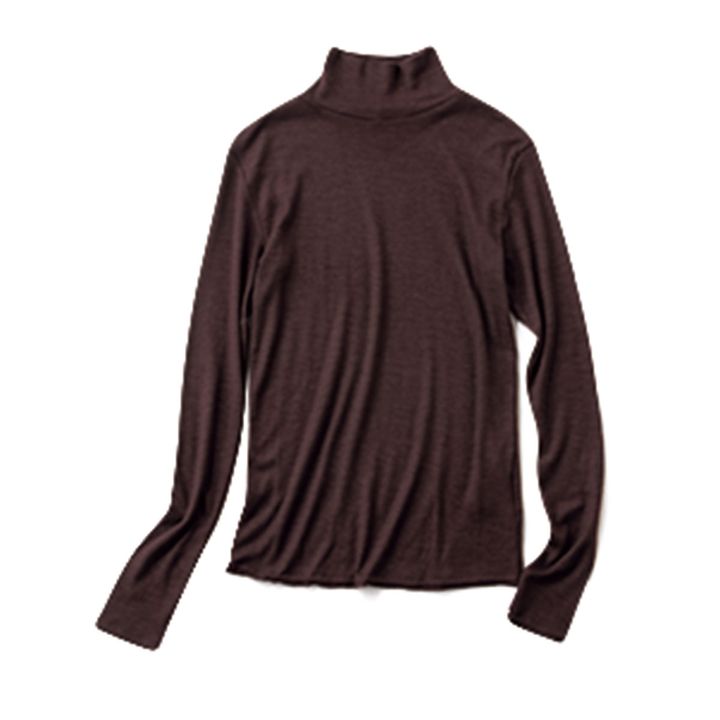ニュアンスブラウンと薄手の素材でレイヤードスタイルが断然、今年っぽくキマる。ウールの質感もリッチ。¥9,900(ánuans)