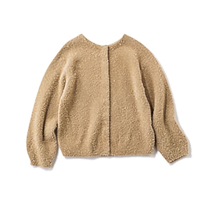トレンドど真ん中のラメ感と少し肉厚なフェザーヤーン素材で装いが華やぐ。羽織ったり巻いたり自在に使える。¥9,990(PLST)