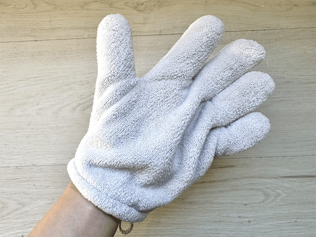 両手にこの手袋をはめてタオルドライし、余分な水分をとってからドライヤーするという使い方もよさそうです。