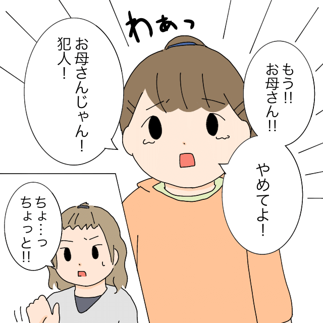 「もう!!おかあさん!!やめてよ!お母さんじゃん!犯人!」お友達に迷惑をかけているのに否定する母親を目の前にして、泣きながらスミレちゃんは訴えました。その様子にとぼけていたスミレちゃんママも「ちょ、ちょっと!」と焦り始めました。