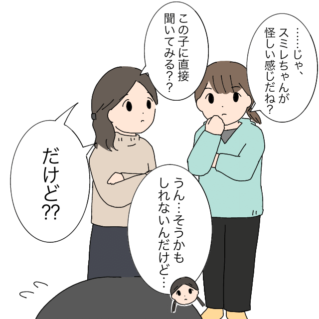アキちゃんママはそれを聞いて「・・・じゃ、スミレちゃんが怪しい感じだね?」と言います。
