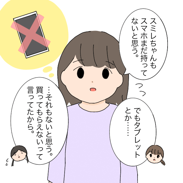 するとハナちゃんが「スミレちゃんもスマホまだ持ってないと思う。」と言いました。