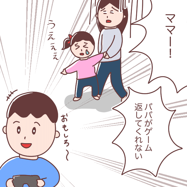 まるで子ども。娘のゲームが楽しすぎて本気で取り合い泣かせるウチの夫にモヤる件[5-2完]|ママ広場マンガ