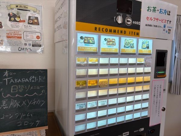 入り口を入って、左に食券販売機が設置されています。メニューが用意されているので、それを見ながら食券を購入します。食券の半券をスタッフさんに渡して、好きな席に着きます。