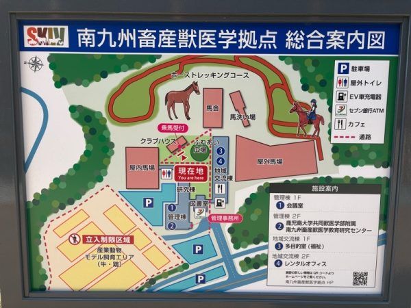 広い敷地の中には、管理棟、研究棟、屋内馬場、屋外馬場、などがあります。