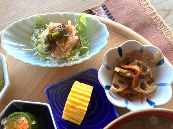 唐揚げはソースがよく合い、レンコンのきんぴら、たまご焼きも美味しかったです~!