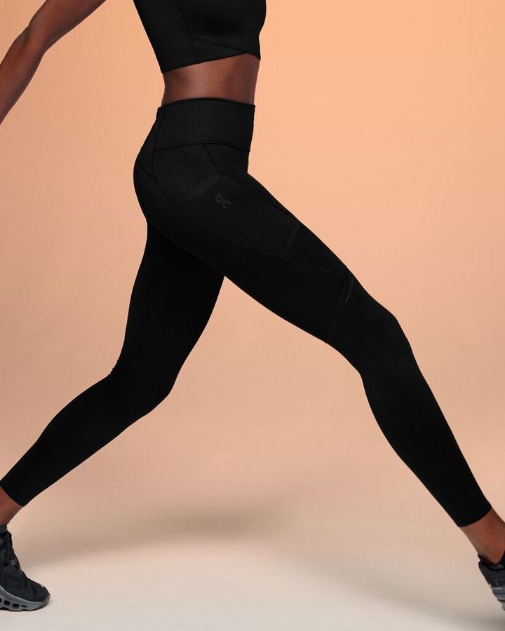 今回コーディネートに取り入れたブラックレギンスは、「On」のロングセラーアイテム「パフォーマンスタイツ」。注目すべきはその便利な3ポケットだ。ももにある大きめのサイドポケットは、スマートフォンを入れるのに大活躍し、腰にあるジッパー付きのポケットには鍵などの貴重品を入れることができる。これならジムへの移動時やランニング中も手ぶらで快適に過ごせそう。また、ハイウエスト仕様なのでスタイルアップ効果も。