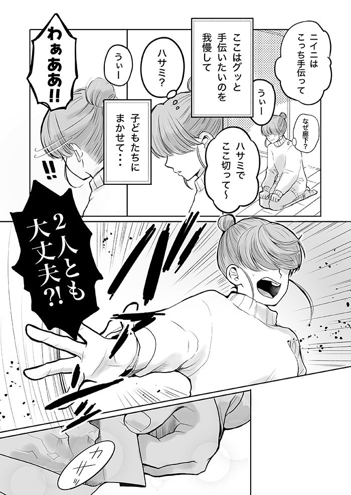 3. 「2人とも大丈夫?!」高校生のニイニと、小1のオトト君がキッチンで作っていたのは…【10歳差兄弟!ぼくのニイニは高校生・31】