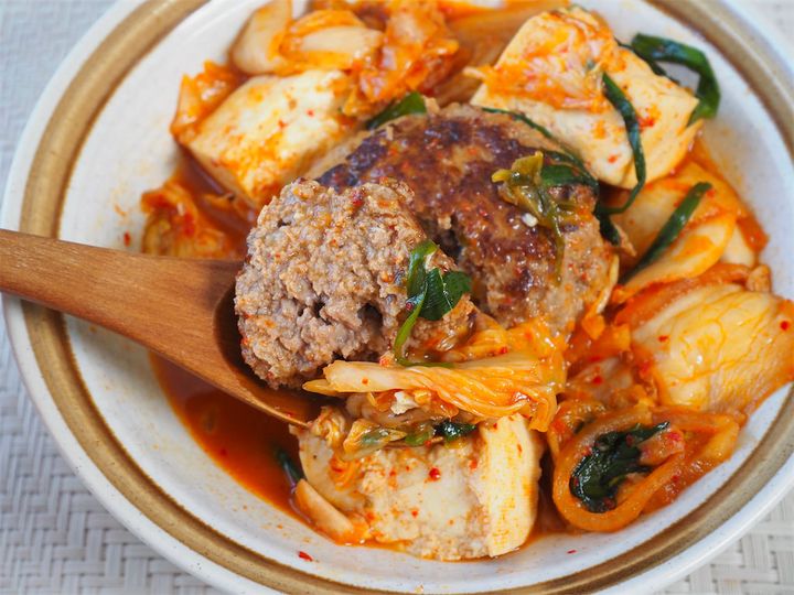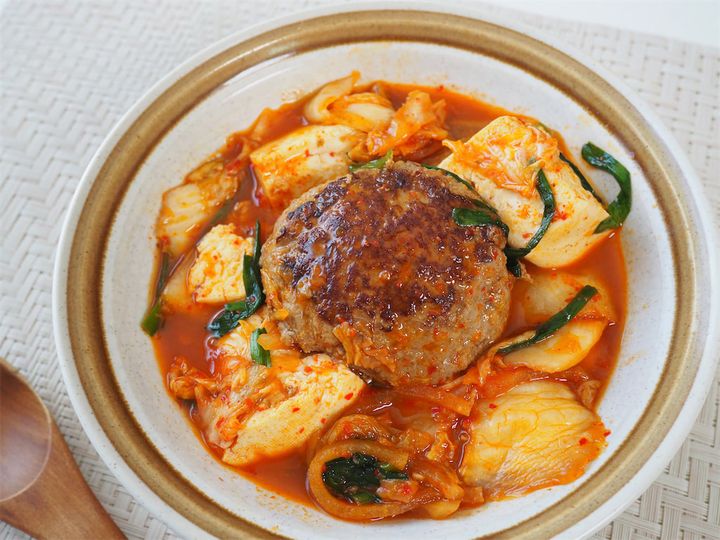 どんどん寒くなっていくこれからの季節。わたし的には体の芯から温めてくれそうな料理といえば辛くて温かいスンドゥブ。というわけで今回は、日本テレビ「沸騰ワード10」でタサン志麻さんが披露していた意外な組み合わせのスンドゥブに挑戦します。なんとその名も「スンドゥブ風ハンバーグ」。心配ご無用!韓国の特別な調味料は必要なく、いつものハンバーグをキムチと煮込むだけで、手軽に旨辛の絶品韓国風料理になるんですって。
