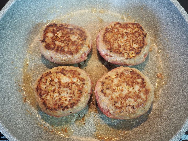 4. サラダ油を引いたフライパンに並べ強火で焼いていく。肉に焼き色がついたらひっくり返し、反対側の面にも焼き色をつけていく。