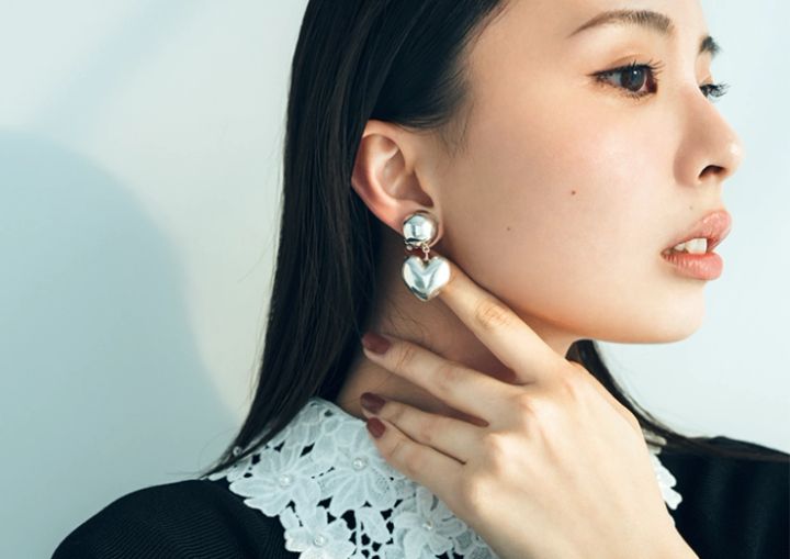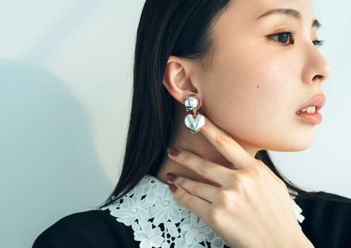メタリックなボールとハートを組み合わせた、絶妙な大きさで顔まわりに存在感を。フェミニンなワンピースから、辛口のデニムスタイルまで、デイリーな装いに洗練をひとさじプラス。どんなシーンでも、さらりとハマります。