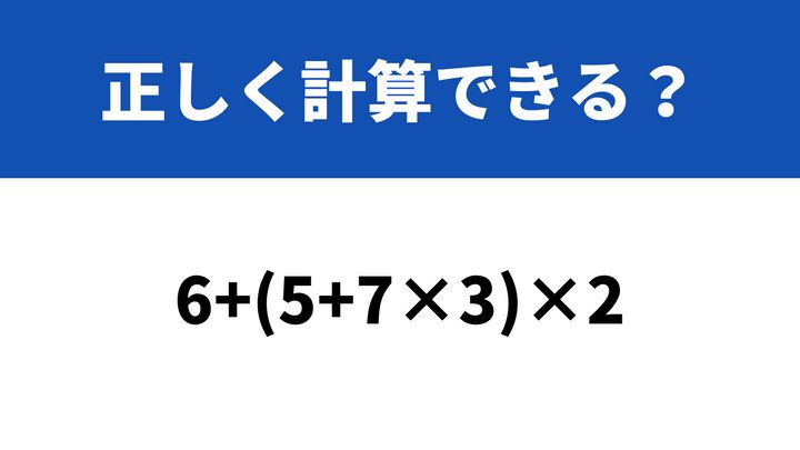 どこから計算するのが正解?!「6+(5+7×3)×2」正しく計算できる?
