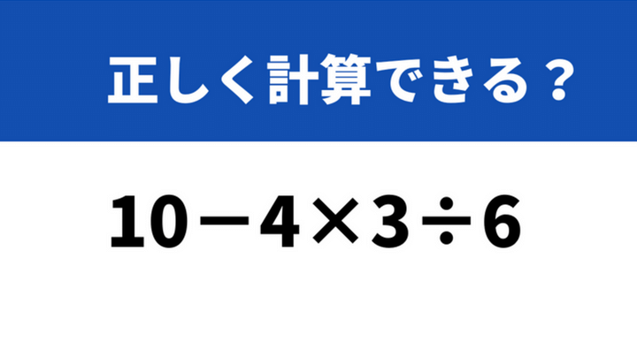 どこから計算するのが正解?「10−4×3÷6」→正しく計算できる?