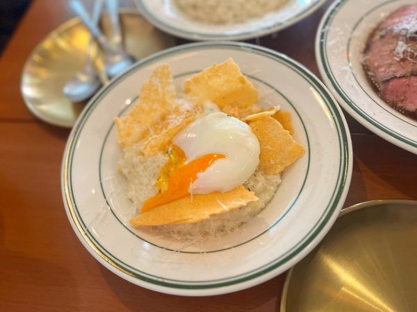 カリカリのチーズのおこげがのった「おこげのチーズリゾット」もチョイスしてみました。こちらには、温泉卵をトッピング!