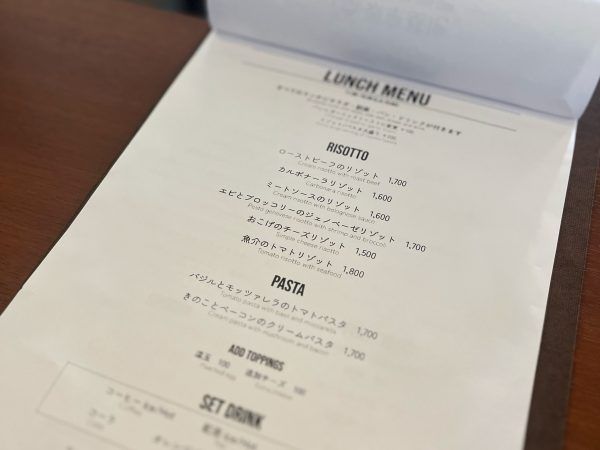 ランチタイムには、名物のリゾットにサラダ・副菜・パン・ドリンクが付いたオトクなランチセットがいただけます。