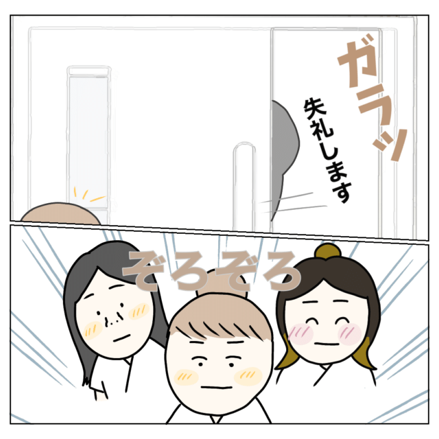 出産予定日の診察の帰り道で突然お腹に強い痛みを感じ陣痛が始まったかと焦ったぬーこさんですが、本陣痛ではありませんでした。そこから1週間後に入院したぬーこさん。病院は子どもも立ち会いができるところを選び、ご主人と長男くん、お母さんと一緒に病院へ向かいました。病室で看護師さんが「点滴いれますねー」と言うと、なぜか「えっ」と焦るご主人。血や注射が苦手で顔を背けるご主人を見て「立ち会い大丈夫そ?」と心配になってしまうぬーこさんでした。