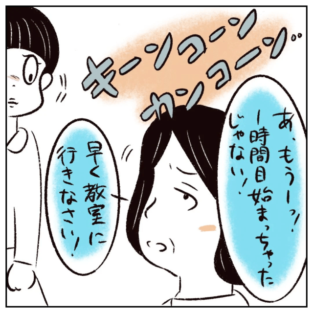 しかし、ちょうどチャイムが鳴り「あ、もうーっ!1時間目始まっちゃったじゃない!早く教室に行きなさい!」と煩わしそうに言われてしまいました。
