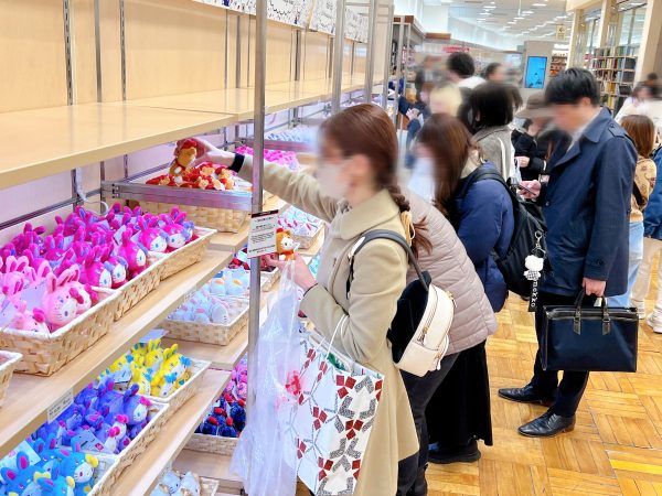 広報の方曰く、「このマスコットコレクションは各会場で大変人気です。今回もお客さまが一番見られるエリアになると思います。(欲しい方)皆さんの手に渡って欲しいです。」とのことでした。 その通り、マスコットコレクションの展開場所は開店と同時にたくさんのお客さんでいっぱいに!人気ぶりが伺えますね。