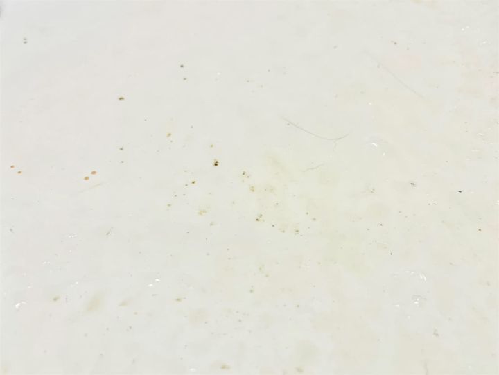 ゴミ受けも一緒にオキシ漬けしたのですが、黒ずみは落ちていませんでした。50mlのお湯に付属のスプーン半分ほどのオキシクリーンを入れた、より濃いオキシ溶液に1時間漬けてみましょう。