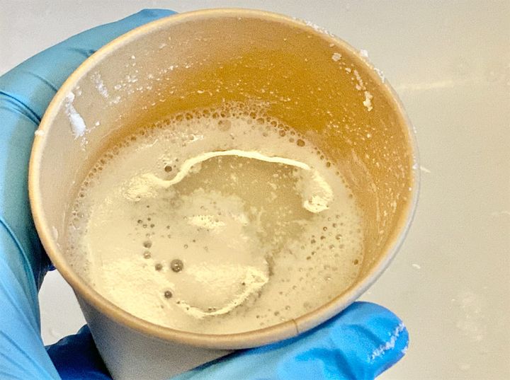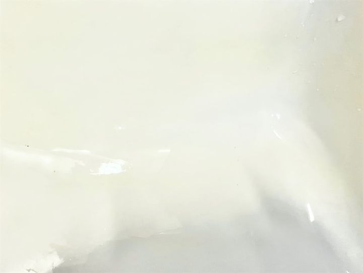 1.小さな容器にオキシクリーンを適量入れ、ペースト状になるまで40〜60℃のぬるま湯を注ぐ。