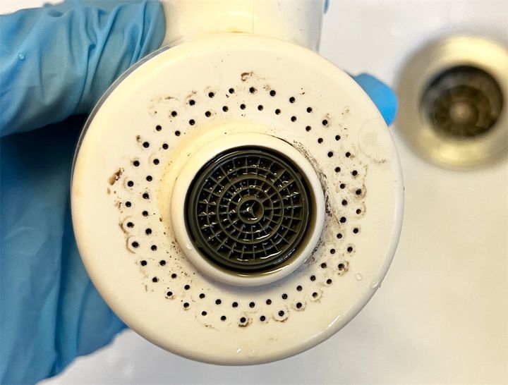 水アカと黒ずみがこびりついたシャワーヘッドは…
