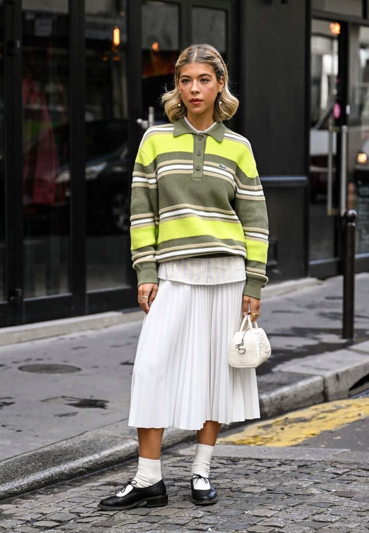 新たにニットを買い足すならば、品の良さと知的なムードを醸す襟付きアイテムもオススメ。素肌に着用するだけでサマになるアイテムは、Z世代を夢中にさせたちょっぴり“オタクっぽい”ムードを漂わせるトレンド「ギークシック」にもフィットする。アーティストのカミラ・カベロは、ミュウミュウMIU MIU)のニットポロのインにシャツをレイヤードする玄人な着こなしを披露した。