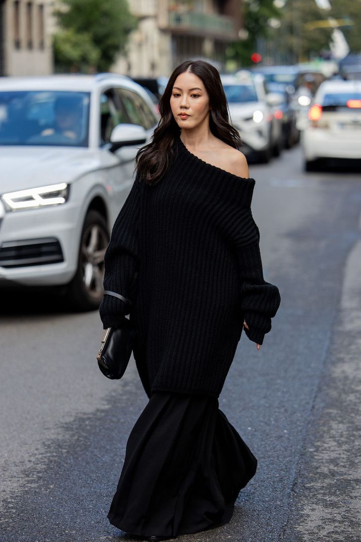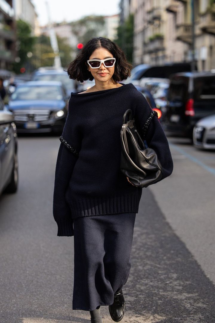 シンガーでビヨンセの妹としても知られるソランジュは、ブラックのニットとレーススカートをセンシュアルに着こなした。ブラックのニットをシックに纏うなら、ロング丈かつオーバーサイズを選ぶのがベター。ワイドシルエットのパンツやスカートを合わせ、ブラックのミニマルなバッグを持てば、街に溶け込むモードなスタイルを演出できる。