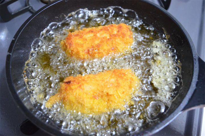 5. 小麦粉、溶き卵、パン粉を付けて、きつね色になるまで揚げれば出来上がり。