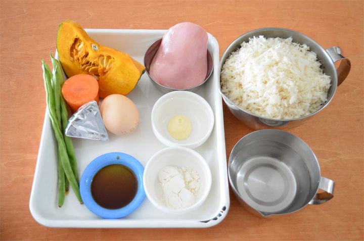 ハムの塩味がかぼちゃの甘味をより一層引き立てています。コロコロに切ったいんげんとにんじんの食感も楽しい♪