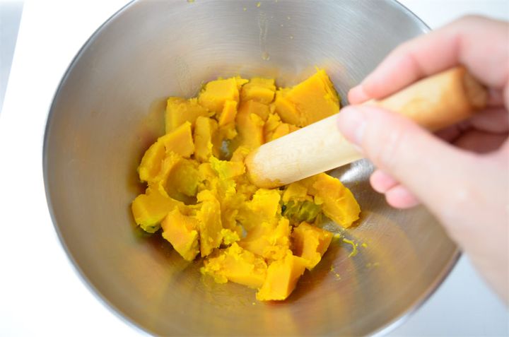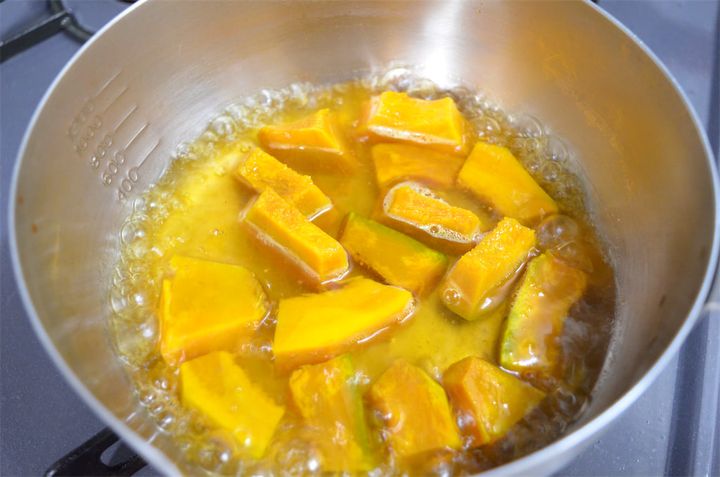 かぼちゃは一度煮てしっかりと下味を付けているので、ソースなしでもおいしく食べられます。