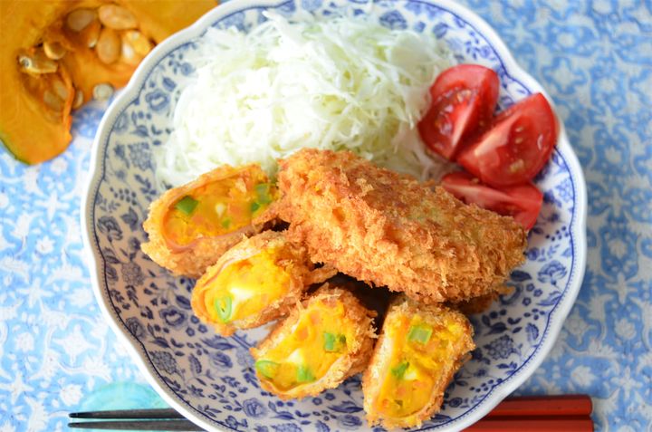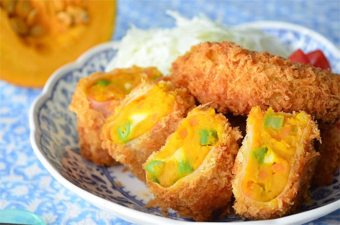 いつものじゃがいもコロッケもいいけれど、旬のかぼちゃを使って作る変わり種「かぼちゃのハム包みフライ」もオススメ!