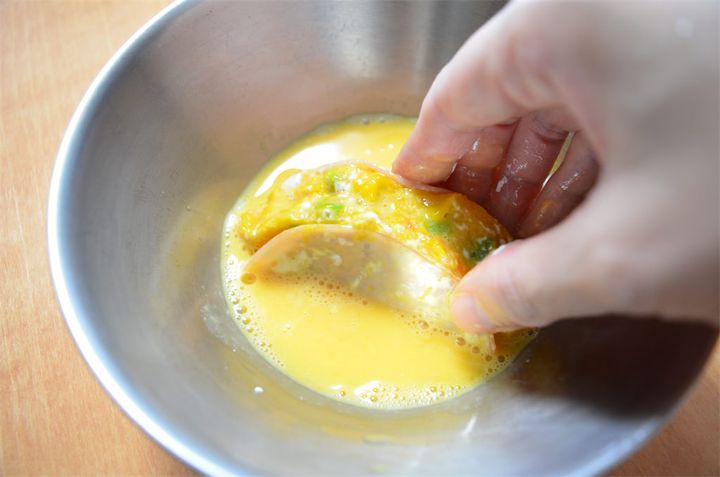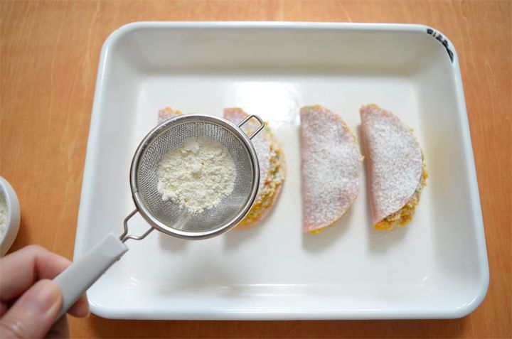 断面がカラフルだからお弁当にも!「かぼちゃのハム包みフライ」