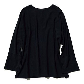 黒ブラウス/アダム エ ロペ 動作とともに生まれる自然なドレープが上品。ほのかな透け感で、ルーズなシルエットが着ぶくれして見えない。前後2WAYで着用可能。
