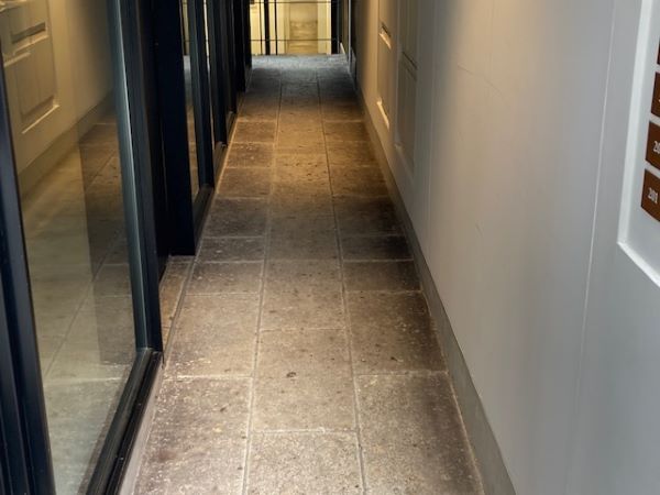 皆さん、こんにちは。リビングふくおか・北九州Web地域特派員のkurinaです。今回は2024年11月8日(金)に福岡市博多区のグラムビル御供所町にオープンした「BASE GALLERY HAKATA」をご紹介します。 「大博通り」沿い、西鉄バス「奥の堂」バス停から徒歩1分、石畳風の「奥の堂通り」を聖福寺に向かって歩みを進めると、ひと際白がきわ立つ建物を左側に見ることができます。 この真白の建物はこちらもオープンしたばかりの茶房「SABOE HAKATA」なのですが、その茶房のすぐ横に人ひとりが通れるくらいの石畳様の通路があります(まるで猫の散歩道みたいでした)。 その道を進んでいくと透明なガラス越しにアートの世界が広がっているのです。なんだか異空間に来たような気がしてワクワクしてしまうのは、私だけでしょうか?(^^♪