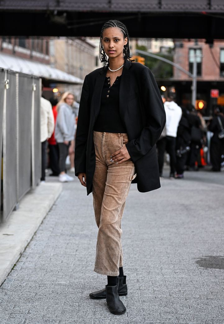 ピアソンはストレートレッグのダークデニムと合わせることが多いそうで、「デニムのすっきりとしたカットと色で、この靴のスポーティーな雰囲気とのバランスが取れる」と話す。また、靴下を見せて遊ぶのもありだと彼女は付け加える。自身のブランドの最近の写真撮影では、スエードのチェルシーブーツをテーラードショートパンツとチャンキーソックスとスタイリングしたそうで、フレッシュかつクールに仕上がったそうだ。