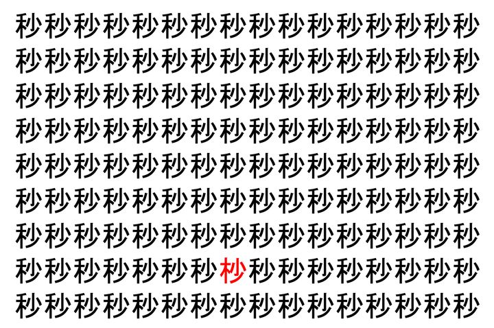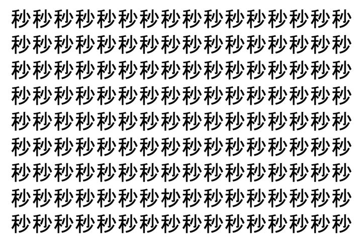 画像に並んだたくさんの「秒」という漢字。 その数144個なのですが・・・、実はその中に1つ違う漢字が紛れ込んでいます!!