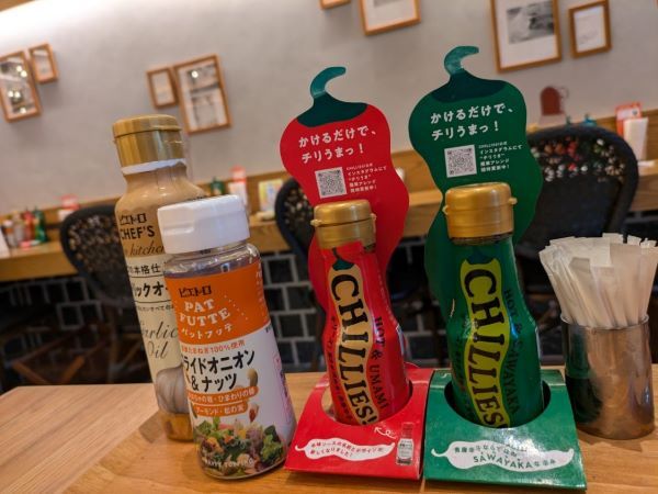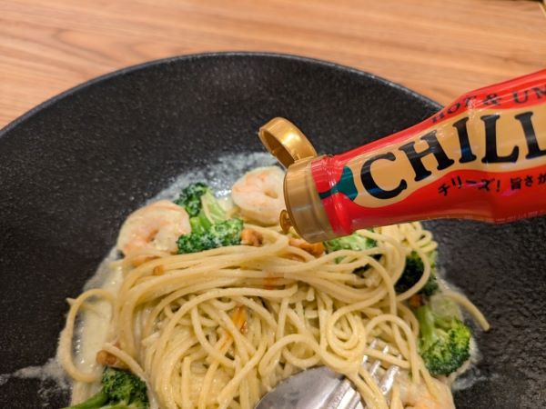 味変もお勧めとのことで、卓上の辛みソース「ピエトロ CHILLIES! (チリーズ)」を足してみることにしました。