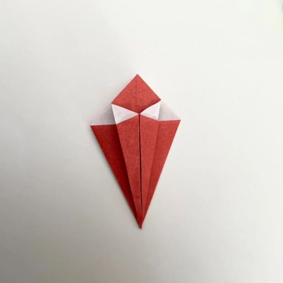 9.さらに左右を中央に折り込みます。逆さまにした細長い凧のような形になればOKです。