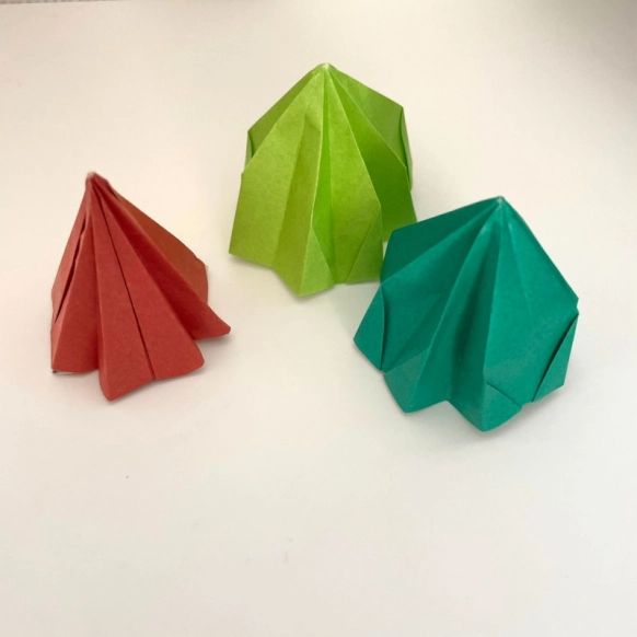 完成度が高いのに、折り紙一枚で作れる立体ツリーです。切れ込みを入れる箇所を増やせば大きい折り紙でも応用できます。大きな折り紙でもぜひ挑戦してみてくださいね☆