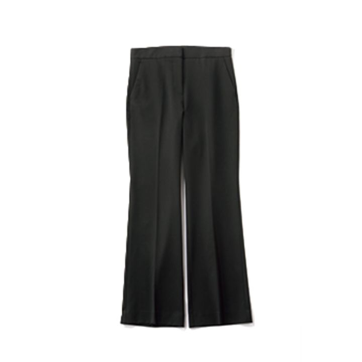 高見えパンツといえば、シルエットから素材感までパーフェクトな、信頼できる黒のワイドストレートパンツ。¥6,990(マンゴ)