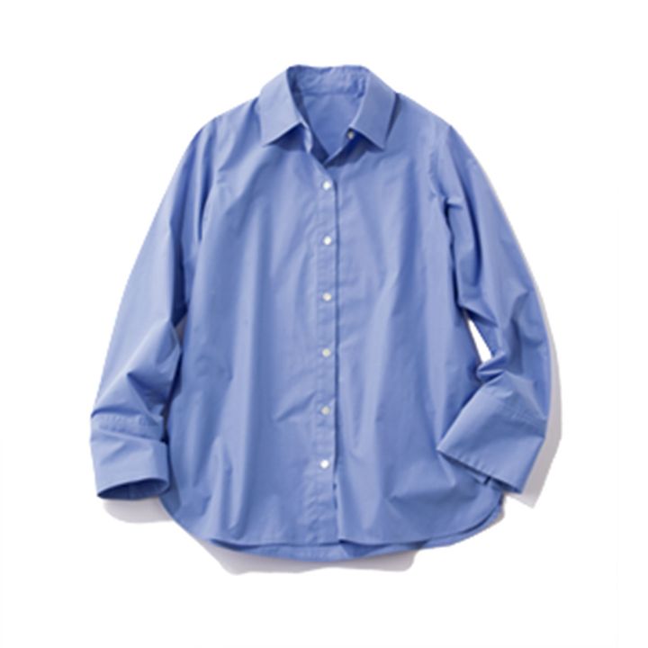 定番のシャツは、今季はベーシック色もシャイニーカラーも受け止めてくれる、爽やかなブルーシャツが正解。¥13,200(ノーク)