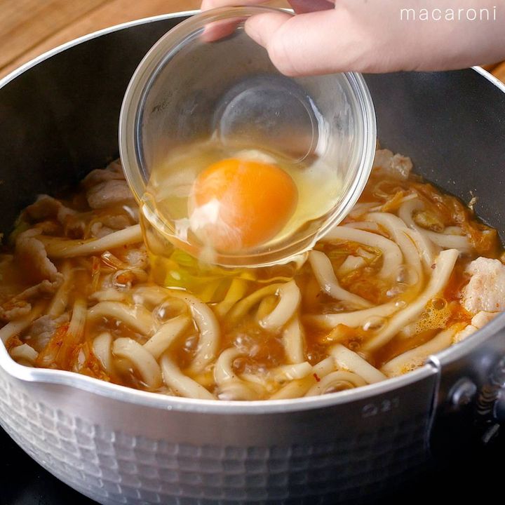 卵にしっかりと火を通したい場合は、うどんを入れる前に卵を落としてください。