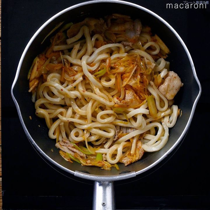 5: うどん、【A】を加えてフタをして1分加熱します。