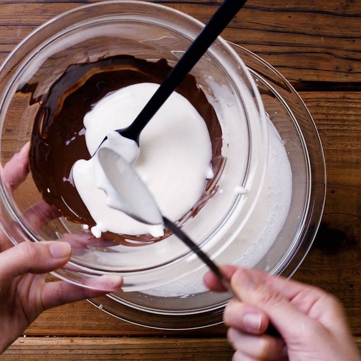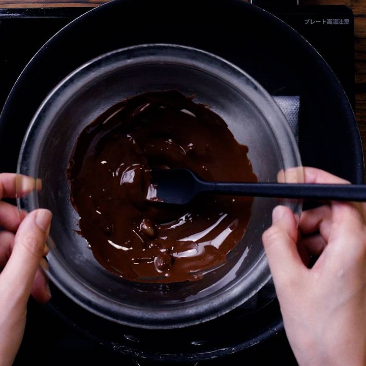 8: チョコクリームを作ります。ボウルにチョコレートを入れて、湯煎で溶かします。