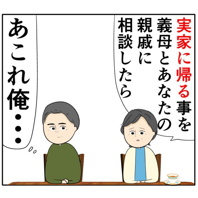 「実家に帰る事を義母とあなたの親戚に相談したら」と、長々と続く義母の昔の話に「あ、これ俺・・・」と嫌な予感を感じる義父。