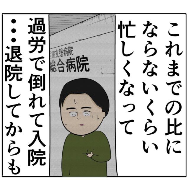 「これまでの日にならないくらい忙しくなって、過労で倒れて入院・・・退院してからも」