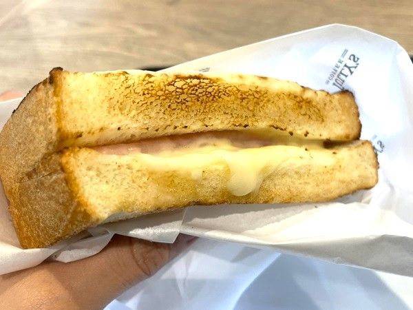 サクサクで香ばしいトーストを頬張ると、コクのあるチーズと肉厚なロースハムが。ベシャメルソースはかなり濃厚で、朝からリッチな気分に浸れます。トーストがサンドされているので頬張るとかなり食べ応えがありました。味が濃いのでブラックコーヒーと合わせるとちょうどよかったです。