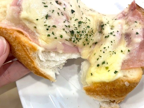 半分にするとたっぷりのチーズがとろけていきます! マヨソースはマヨネーズの味はあまり感じられず、代わりにトリュフの風味もふわっと香りました。これが隠し味としていいアクセントになっていました。ボンレスハムもトーストと同じサイズで大きく、満足感も高いです。これで500円以下なら毎日でも食べたくなります!