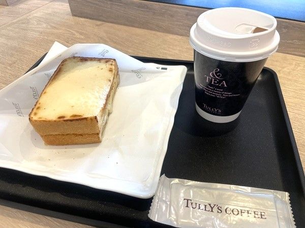 タリーズコーヒーではモーニングの時間帯に「クロックムッシュのホットサンド セット」(単品430円、モーニングセット690円~)を食べることができます。